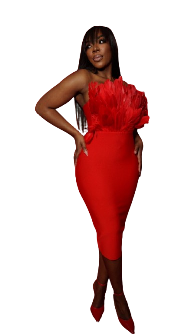 Bodycon Bandage Short-Length Feather Formal Dress | Bold Stylish Formal Dress | Cocktail & Evening Event Silhouette